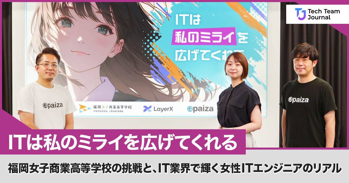 自分らしいキャリアの見つけ方とAI時代のITエンジニアのリアルをお伝えするための第1弾として、福岡女子商業高等学校(以下、福岡女子商)でpaizaと株式会社LayerX(以下、LayerX)のエンジニアリングマネージャー新多 真琴さんによる講演、ワークショップ、交流会が行なわれました。